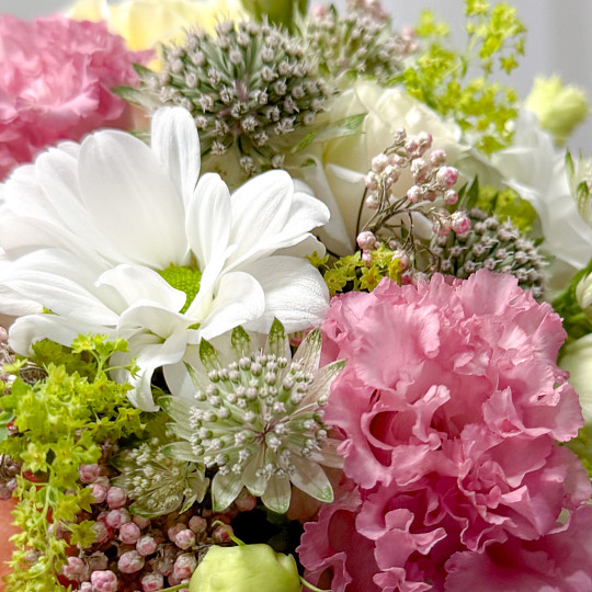 У нас есть также широкий ассортимент цветов и растений для букетов: пионовидные розы, ранункулюсы, гипсофила, гортензия, пионы, лаванда, альстромерия, кустовая роза, герберы, орхидеи, лилии, гвоздика, тюльпаны хризантемы, розовая роза, желтая роза и другие цветы.