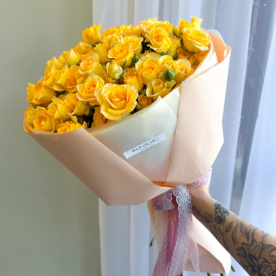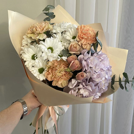У нас есть также широкий ассортимент цветов и растений для букетов: пионовидные розы, ранункулюсы, гипсофила, гортензия, пионы, лаванда, альстромерия, кустовая роза, герберы, орхидеи, лилии, гвоздика, тюльпаны хризантемы, розовая роза, желтая роза и другие цветы.