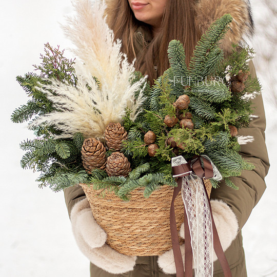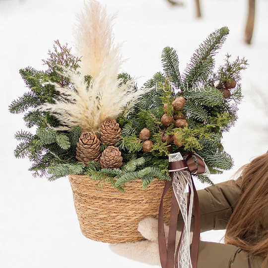 Состав: Нобилис, Туя, Кедровые шишки, Пампасная трава (кортадерия), Бархатный бант