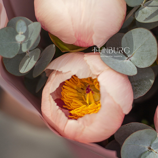 - пионы пастельных тонов, розовые или бледно-желтые сделают букет похожим на аппетитное пирожное;