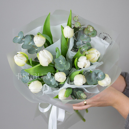 Состав: Махровые тюльпаны, Эвкалипт