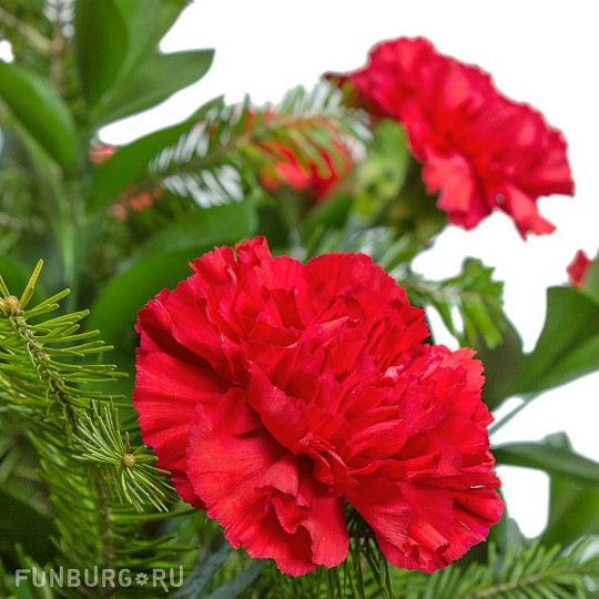 Состав: Нобилис, Туя, Эустома, Кустовые розы, Сортовая гвоздика (диантус), Палочка корицы