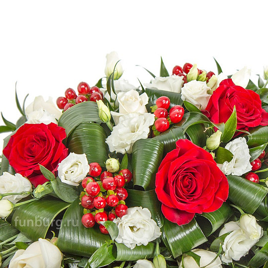 Состав: Кустовые розы, Эустома, Вибурнум (ягоды), Эвкалипт