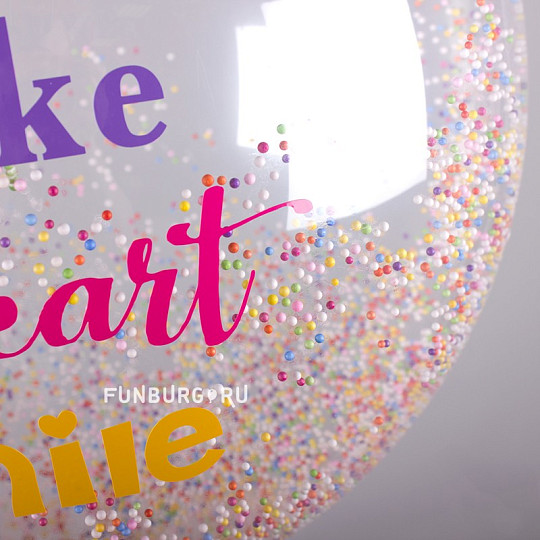 Состав: Стеклянный шар с надписью «Sweetheart» 18″/40 см, Латексный с конфетти, Латексный без рисунка, Из фольги без рисунка, Груз ручной работы (под цвет шариков), «Пакет для транспортировки» (стандартный)