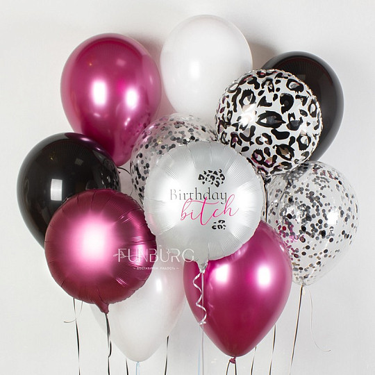 Состав: Сфера с надписью, Воздушные шары «Chrome» (ассорти), Воздушные шары «Супер Агаты», Латексный с конфетти, Латексный без рисунка, Из фольги без рисунка, Груз ручной работы (под цвет шариков), «Пакет для транспортировки» (стандартный)