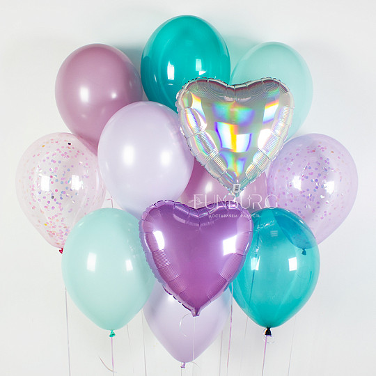 Состав: Воздушные шары «Супер Агаты», Латексный с конфетти, Из фольги без рисунка, Воздушные шары «Chrome» (ассорти), Латексный без рисунка, Груз ручной работы (под цвет шариков), «Пакет для транспортировки» (стандартный)
