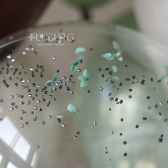 Состав: Стеклянный шар 18″/40 см (без надписи), Латексный без рисунка, Из фольги без рисунка, Латексный с конфетти, Груз ручной работы (под цвет шариков), «Пакет для транспортировки» (большой)