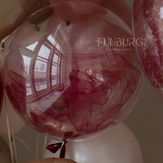 Состав: Шар Bubble с перьями/фатином, Из фольги без рисунка, Воздушные шары «Chrome» (ассорти), Латексный без рисунка, Шары дизайнерских оттенков, Груз ручной работы (под цвет шариков), «Пакет для транспортировки» (большой)