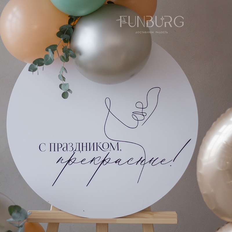 Небольшая фотозона с мольбертом, разнокалиберной гирляндой из шариков мягких оттенков и фигурой с кремовой цифрой (она может быть любой) и кругом, на который можно нанести любую надпись, идеально подходит для небольших оформлений, домашних праздников и фотосессий.