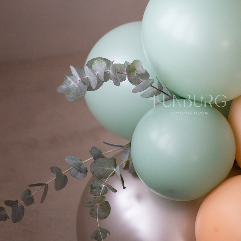 Состав фотозоны вы можете редактировать самостоятельно по своему желанию, а гирлянда из шаров может быть выполнена в любой цветовой гамме и стилистике торжества: просто подробно опишите нам все особенности, а мы подберем необходимые шарики, декор, согласуем все детали с вами и воплотим идею в жизнь!