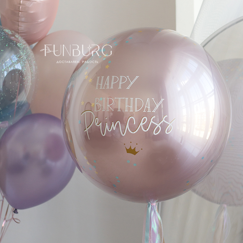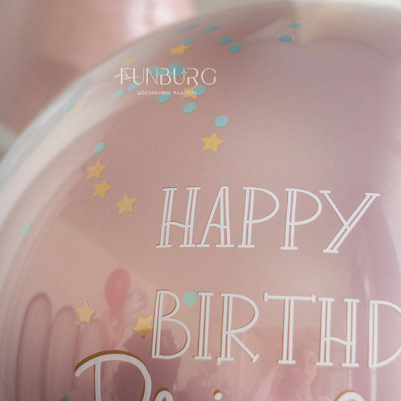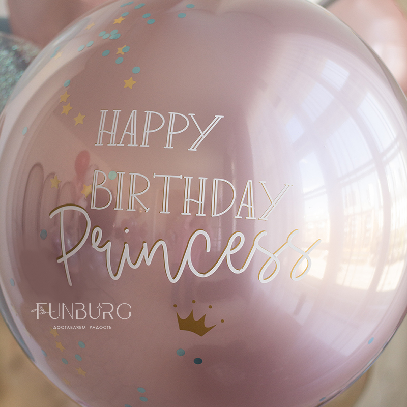 Зеркально-глянцевый мерцающий розовый шар с конфетти в форме звездочек и кружочков с надписью (ее можно сделать любой), дополненный пышным шлейфом из ленточек. Идеален для подарка принцессе любого возраста! А еще, его идеально дополняет шар в виде единорога ;)