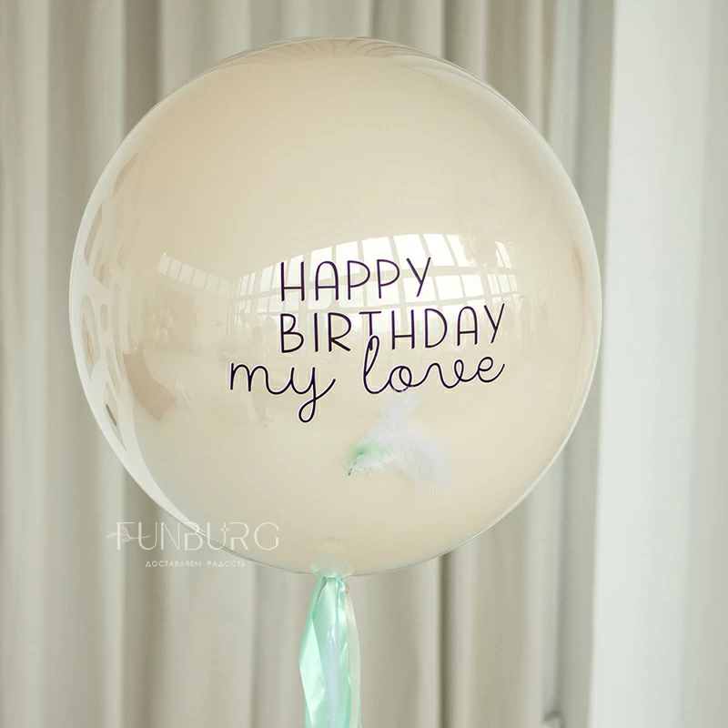 Особенности: большой шар состоит из двух шариков (внутреннего цветного и прозрачного верхнего глянцевого слоя из тонкого пластика), благодаря чему шар долго летает, сохраняет свою форму и размер, а наклейка на нем долгое время не деформируется и выглядит привлекательно.