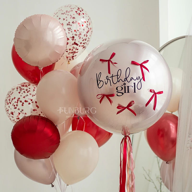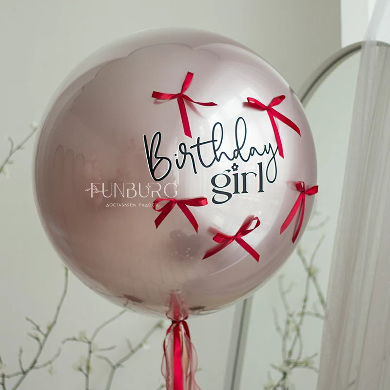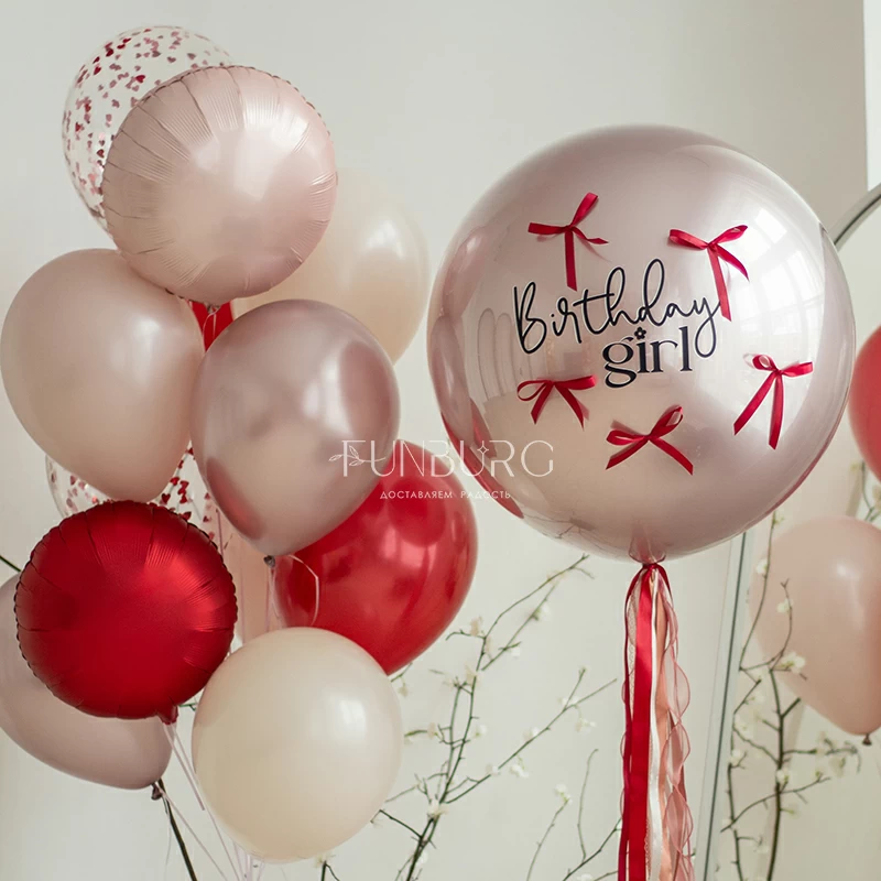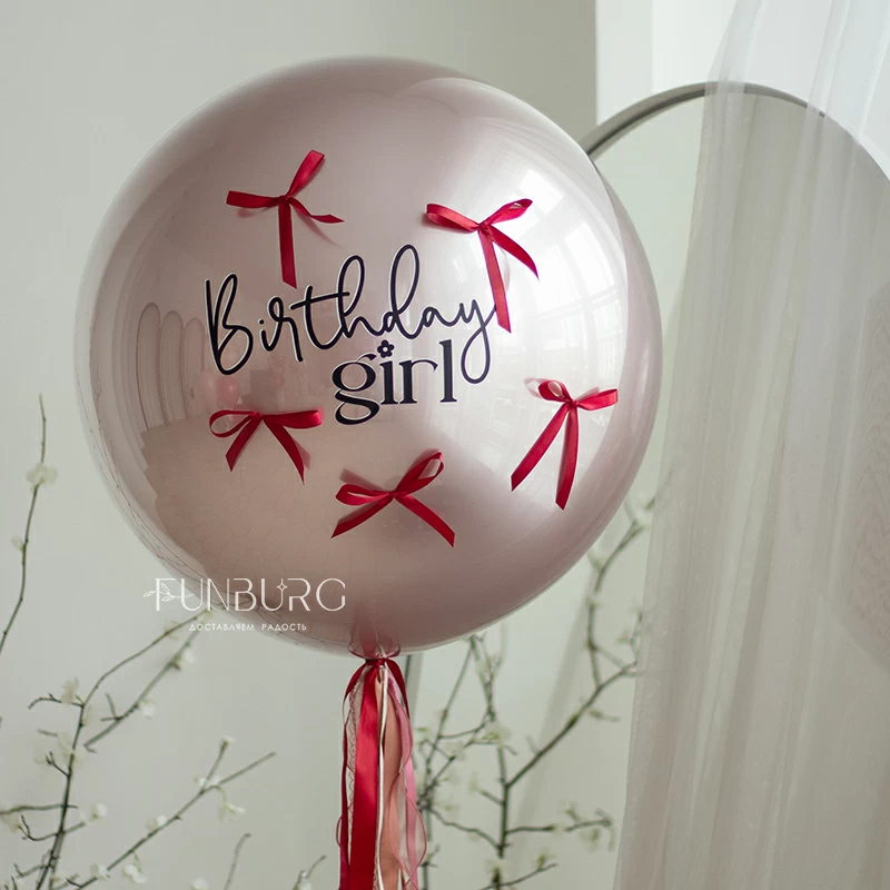 Большой зеркально-глянцевый мерцающий шар завораживающего сложного пыльно-розового оттенка коллекции Silk с поздравлением, контрастными вишнёвыми бантиками и пышным шлейфом из розово-вишнёвых лент идеально подойдет для эффектного и очень красивого поздравления самых близких и украшения самого стильного праздника! Идеальным дополнением к шару станет связка в розово-вишневых оттенках или шарики без рисунка в той же гамме, которые можно так же дополнить вишневыми бантиками!