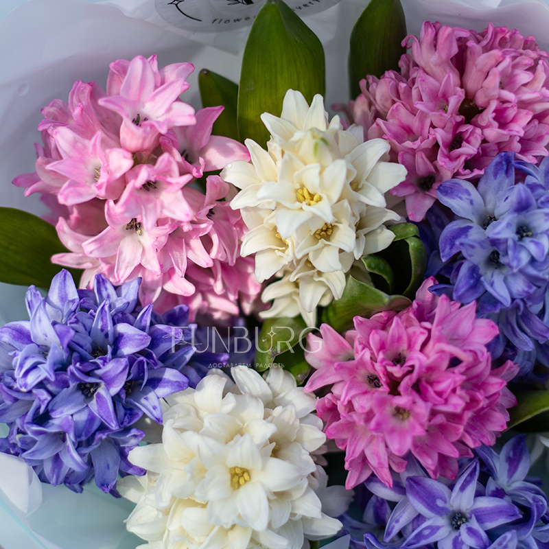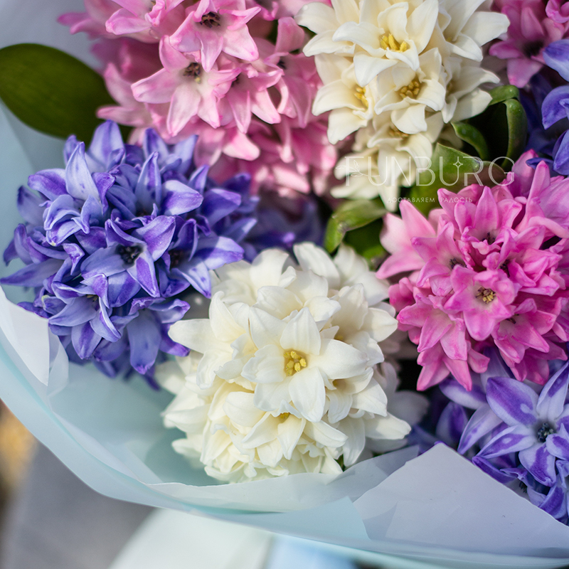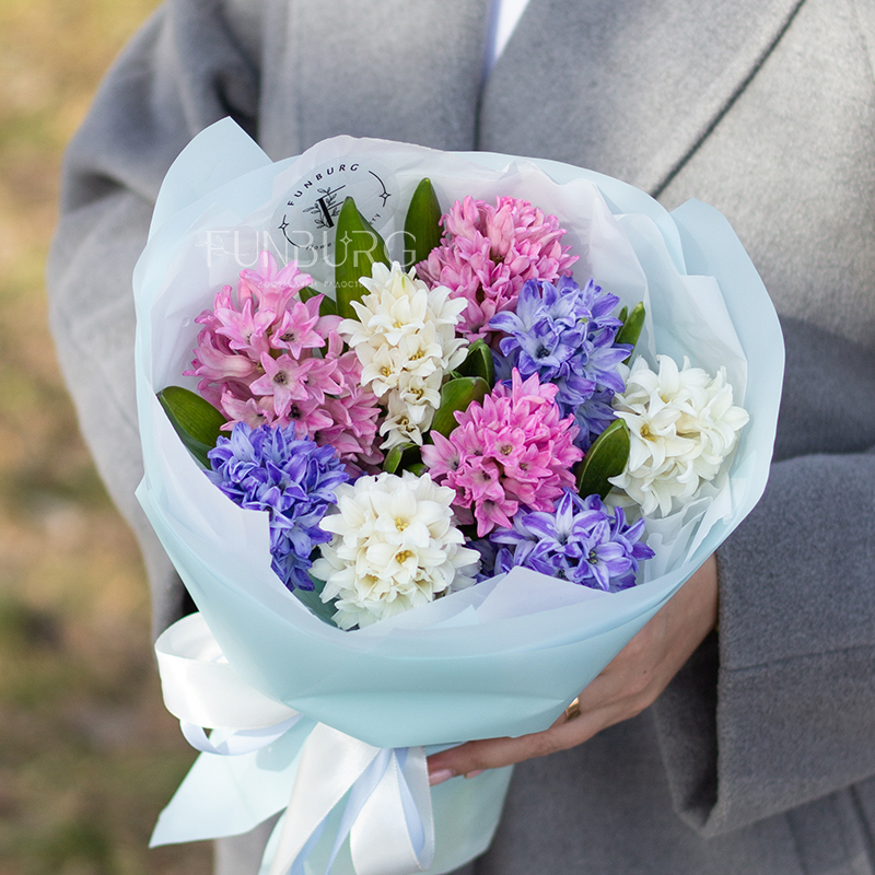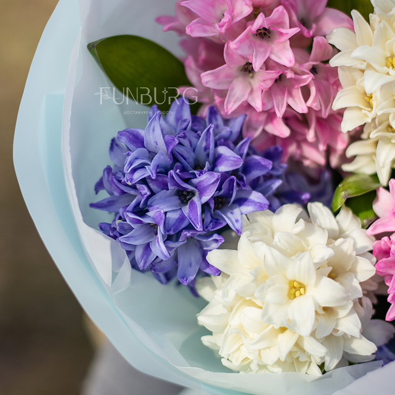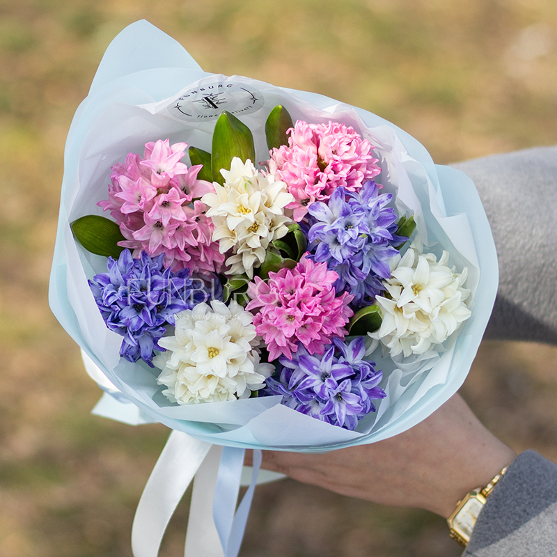 Очаровательный букет из душистых гиацинтов сливочного, розового, и голубого цветов идеален для весенний цветочных сюрпризов по поводу и без!