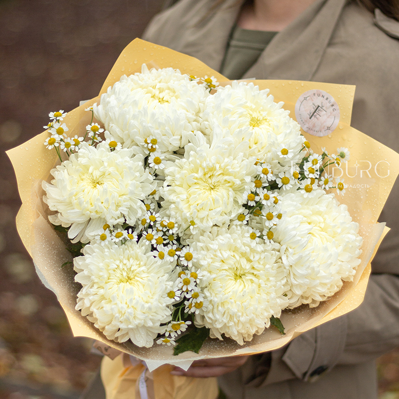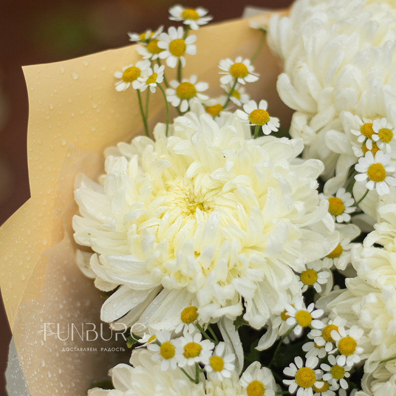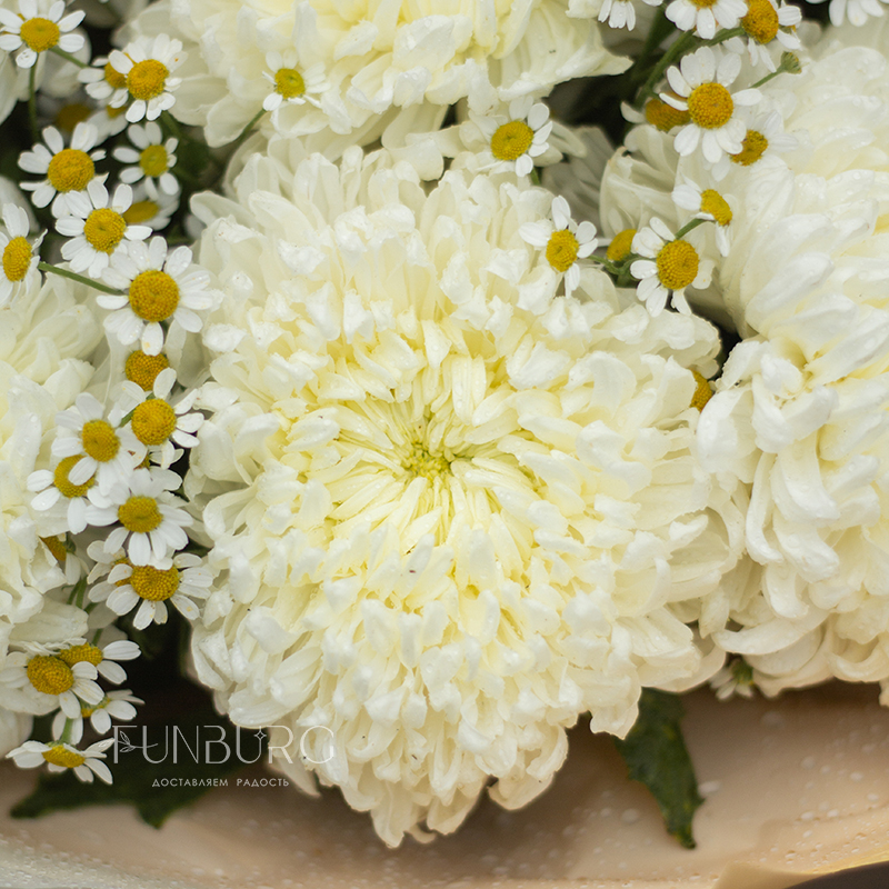 Букет из ромашек и хризантем «Ванильный крем»