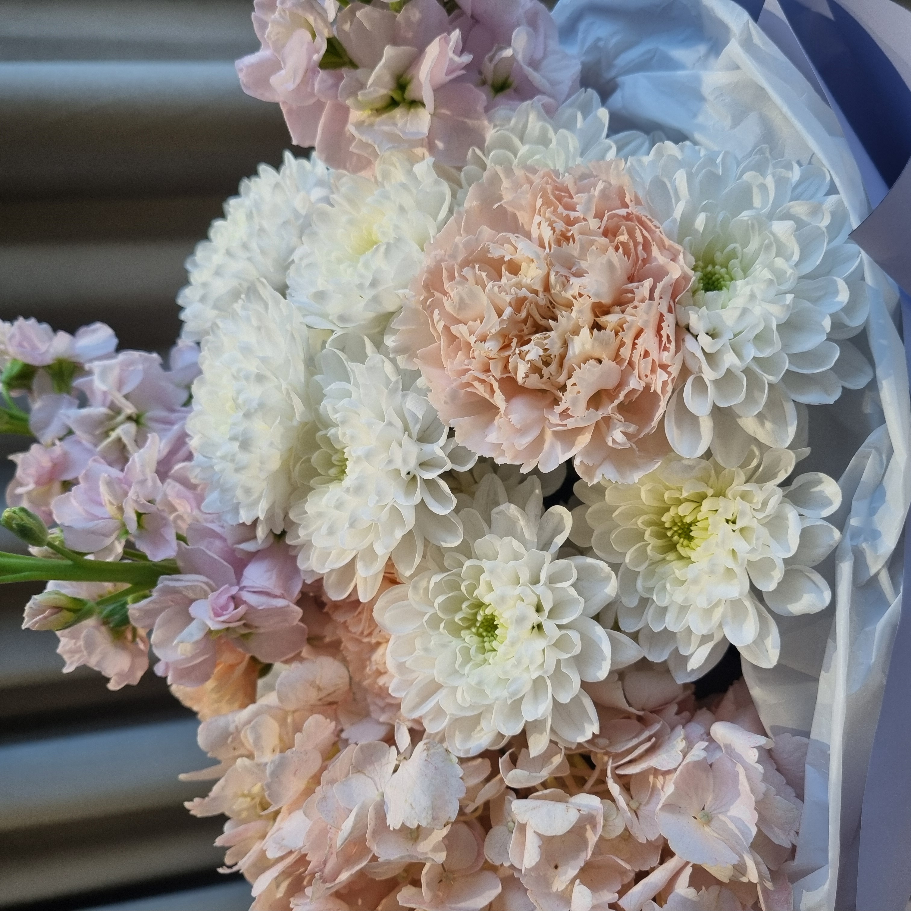 Букет из свежих сезонных цветов собран с любовью нашими флористами и готов отправиться с доставкой по нужному адресу в самое ближайшее время. Вы можете заказать его с доставкой или приехать за ним самостоятельно на Краснолесья, 100/3.