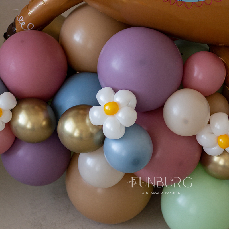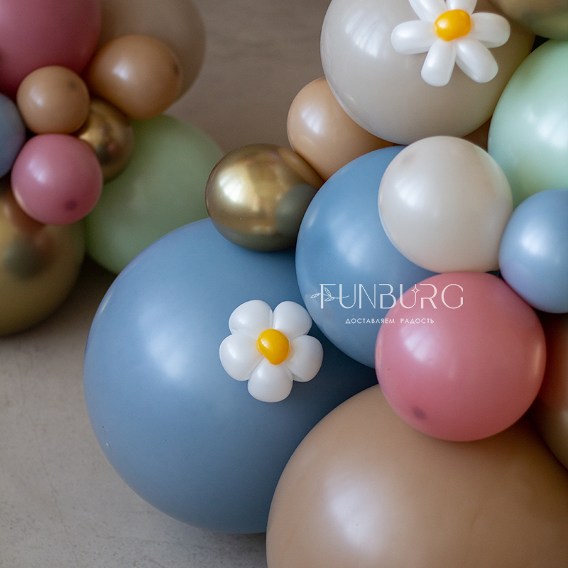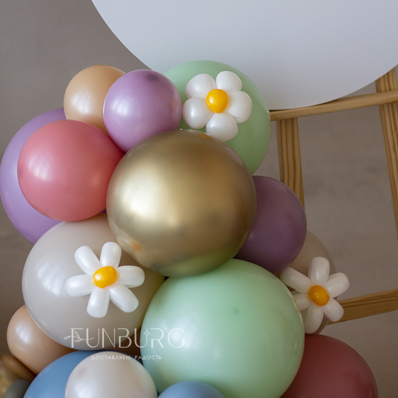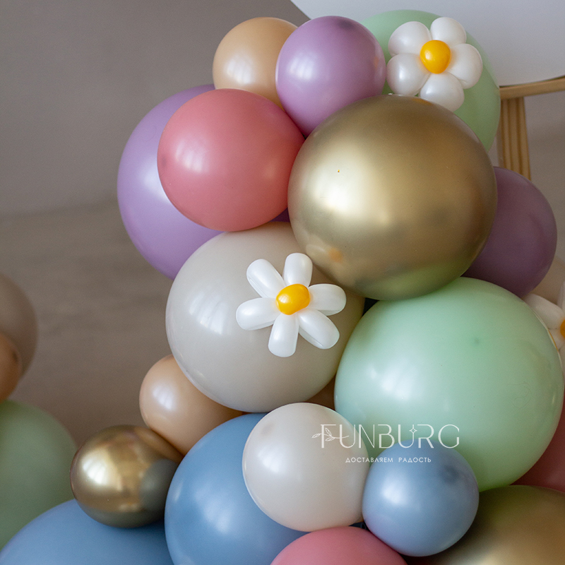 Состав оформления вы можете редактировать самостоятельно по своему желанию, а цветовая гамма может быть любой: просто подробно опишите нам все особенности, а мы подберем необходимые шарики, декор, согласуем все детали с вами и воплотим идею в жизнь!