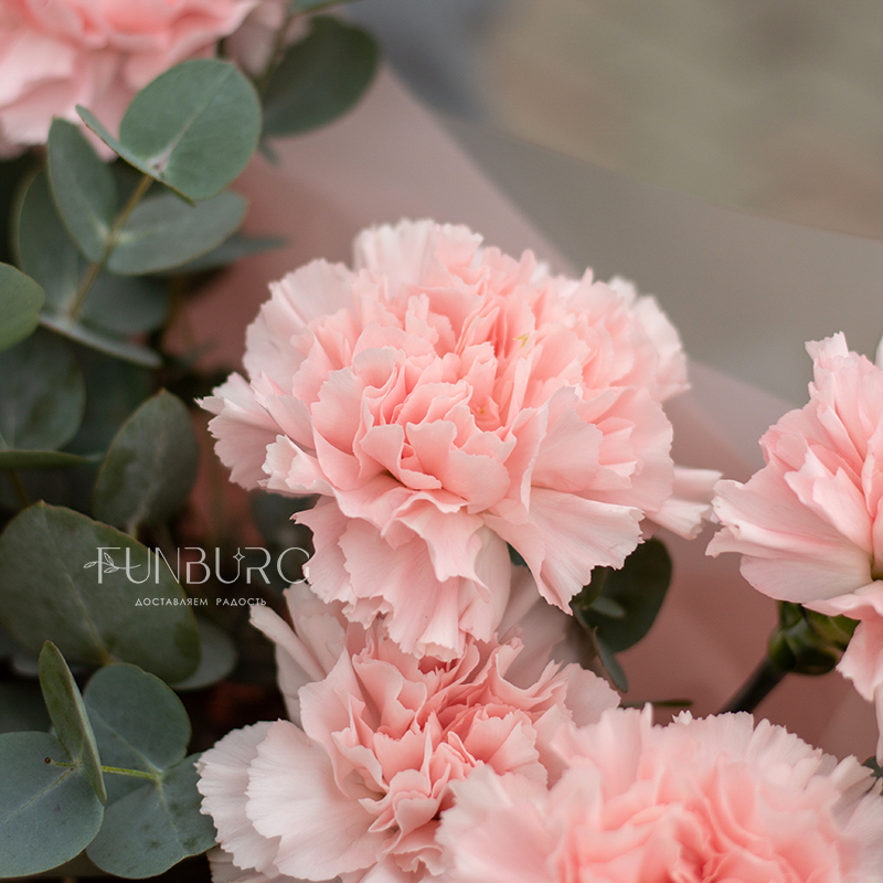 Такой простой и удивительно нежный букет из кружевных нежно-розовых диантусов в обрамлении серебристых листьев эвкалипта! Эти умопомрачительные цветы будут завораживать своей неповторимой красотой долго-долго (больше недели точно), если не забывать простые правила ухода, конечно ;)