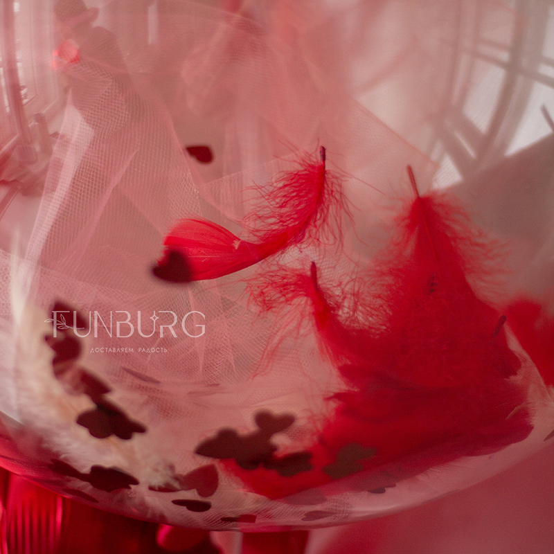 Настоящее сердечное безумие! Большой зеркально-глянцевый шар нежнейшего пыльно-розового оттенка с сердечками, признанием (текст может быть любым) и шлейфом из ленточек, красивая красно-розовая связка шариков с сердечками и шаром bubble с фатином, перьями и сердечками-конфетти! Этот набор подойдет для самых ярких признаний и эффектных сюрпризов для любимых!