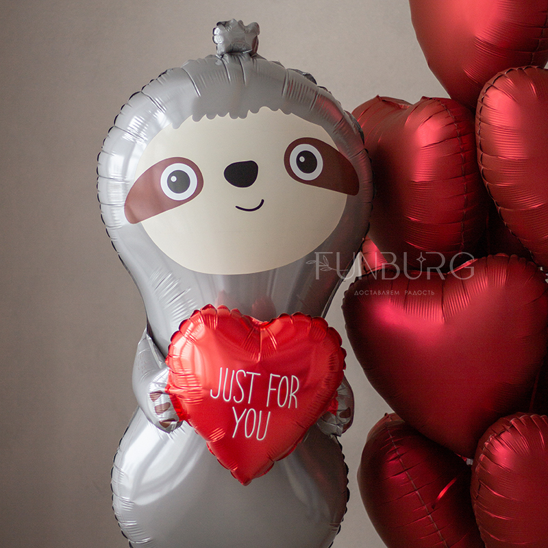Набор: ходящий шар «Влюблённый ленивец» + связка сердец