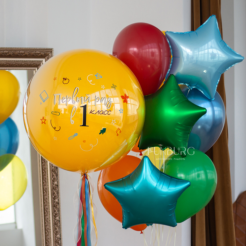 Набор: стеклянный шар и связка шаров «В первый класс»