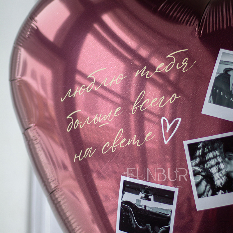 Большое сердце красивого насыщенного вишнёвого оттенка создано для того, чтобы сказать любимым о самых глубоких чувствах! Сердце мы декорировали уникальным украшением в виде ваших фотографий (фотографии необходимо будет отправить нам на почту mail@funburg.ru), придумали дизайн, а вам остается только выбрать из своего фотоархива самые ценные и подходящие снимки, придумать надпись (или использовать наш пример) - идеальный подарок любимым готов!