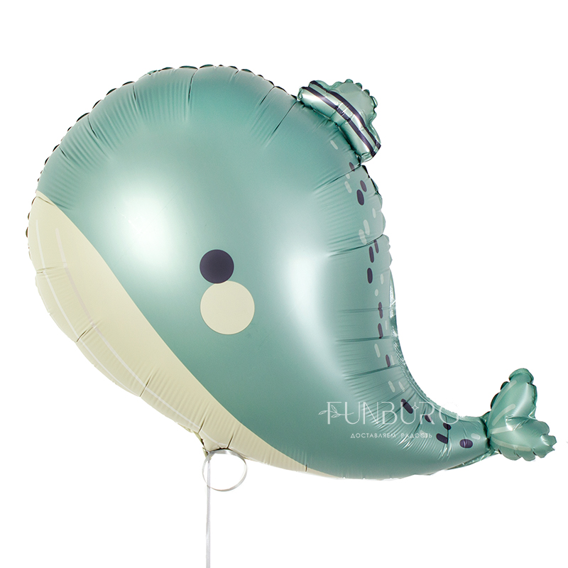 Милый сатиновый китёнок красивого припыленного бирюзового оттенка точно понравится любителям морских обитателей и станет стильным украшением тематического праздника!