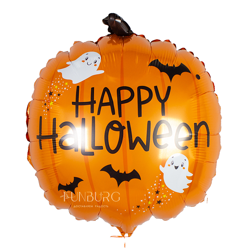 Яркая тыква с привидениями, летучими мышками и пожеланием счастливого Хэллоуина – этот шарик просто создан украсить вашу вечеринку!