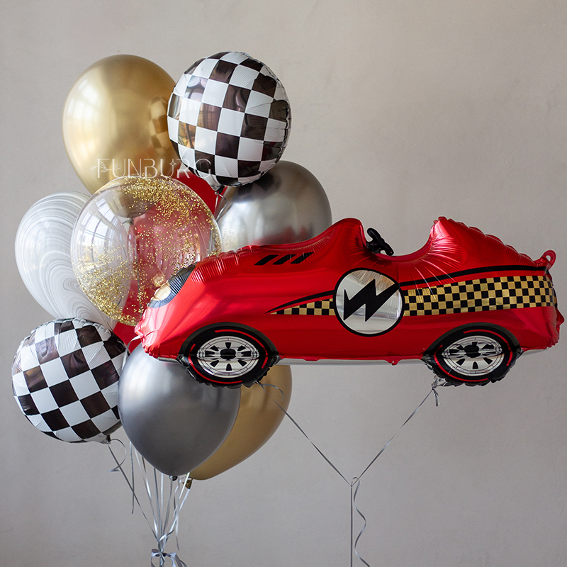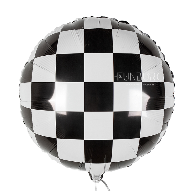 Шарик с принтом в виде шахматной клетки идеально подойдет для оформлений и сюрпризов в тематике гонок, Формулы-1 и, конечно же, для любителей шахмат.