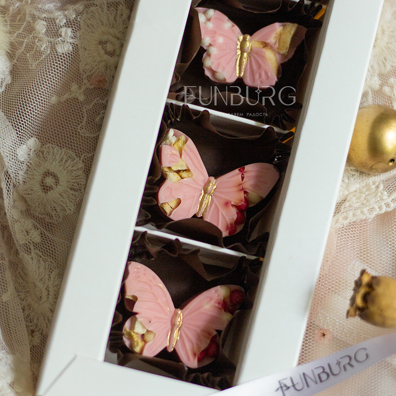 Шоколад ручной работы «Бабочки» S (клубничный шоколад)