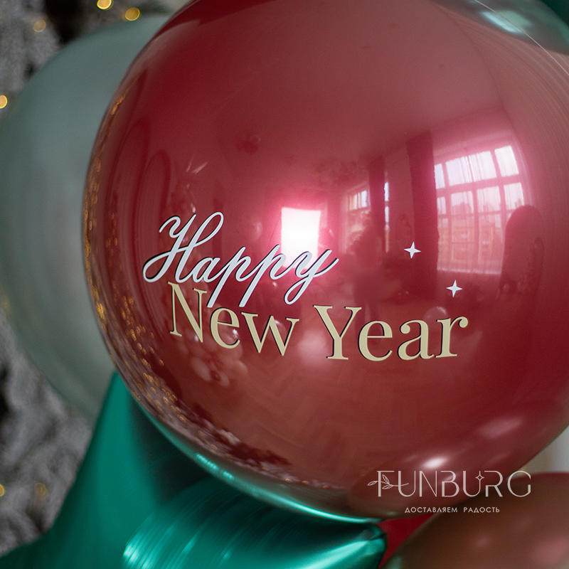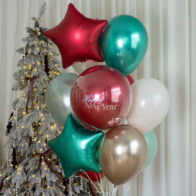 Волшебная связка шариков самых праздничных оттенков: мерцающего красного, мятного, сатинового изумрудного, с красивым стеклянным шаром с мерцанием и красивой надписью (ее можно сделать любой), сатиновыми звёздами. Идеальное украшение всех зимних праздников!