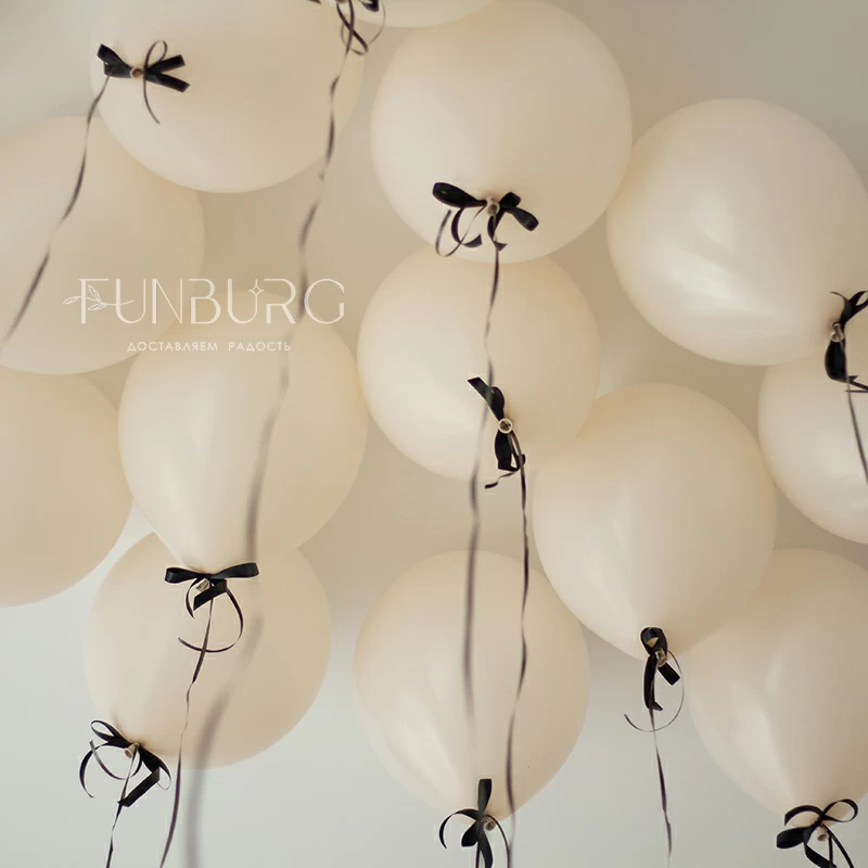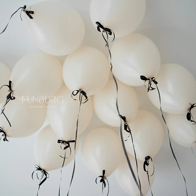 В нашем примере использовано классическое сочетание кремовых шариков и черных бантиков, но вы можете выбрать любой цвет шариков линейки «пастель», «кристалл» или «металл», а также цвет бантиков, и указать пожелания в комментариях заказу.